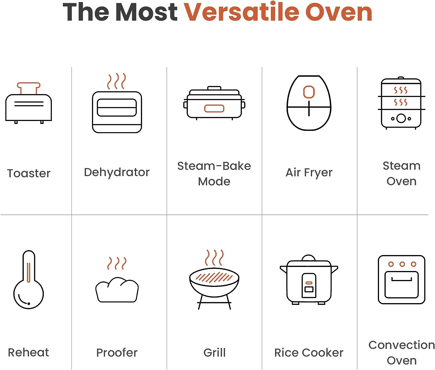 FOTILE ChefCubii 4-in-1 Countertop Convection Steam Combi Oven Air Fryer Dehydrator with Temperature Control, 40 Preset Menu and Steam Self-Clean, 1 CFT