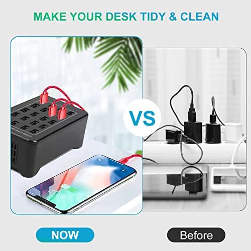With a 100W power output for 20 ports, this USB strip charging station is compatible with smartphones, iPhones, iPads, Galaxies, e-readers, power banks, voice recorders, Bluetooth earphones, and most other 5V USB-charged devices. It also helps keep your desk organized.