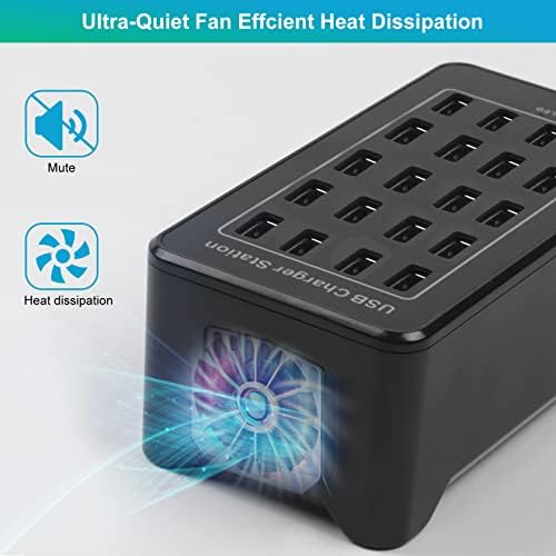 20-Port 100 W(20 A) Multiple USB Charger Station,RISWOJOR Multiport USB Charging Station with Intelligent Detection, Compatible with Smartphones, Tablets, and More Devices