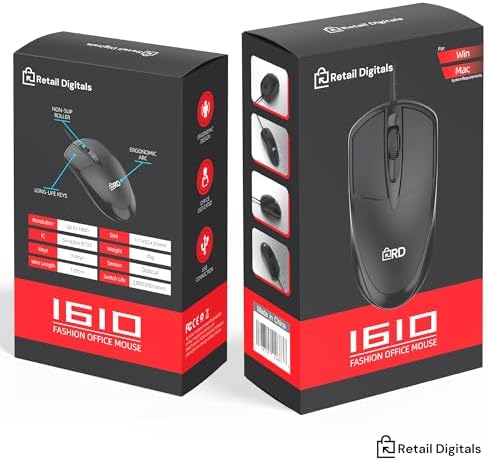 Retail Digitals 3-Button USB Wired Mouse | High-Precision Optical Tracking | ...