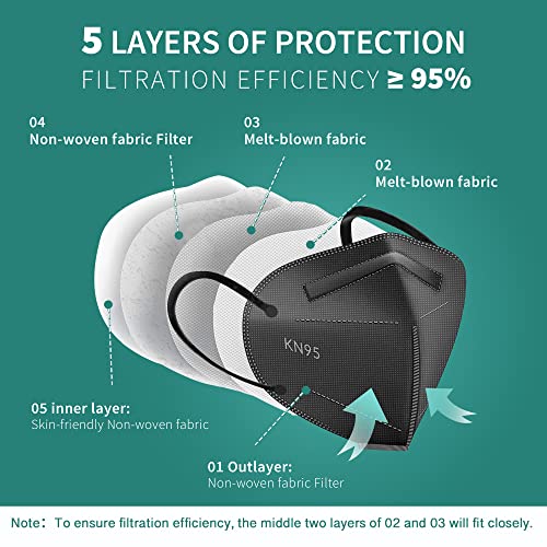 KN95 Face Mask 50 Pcs, 5-Ply Breathable KN95 Masks, Filter Efficiency≥95% Against PM2.5, Individually Wrapped, Disposable White Face Masks