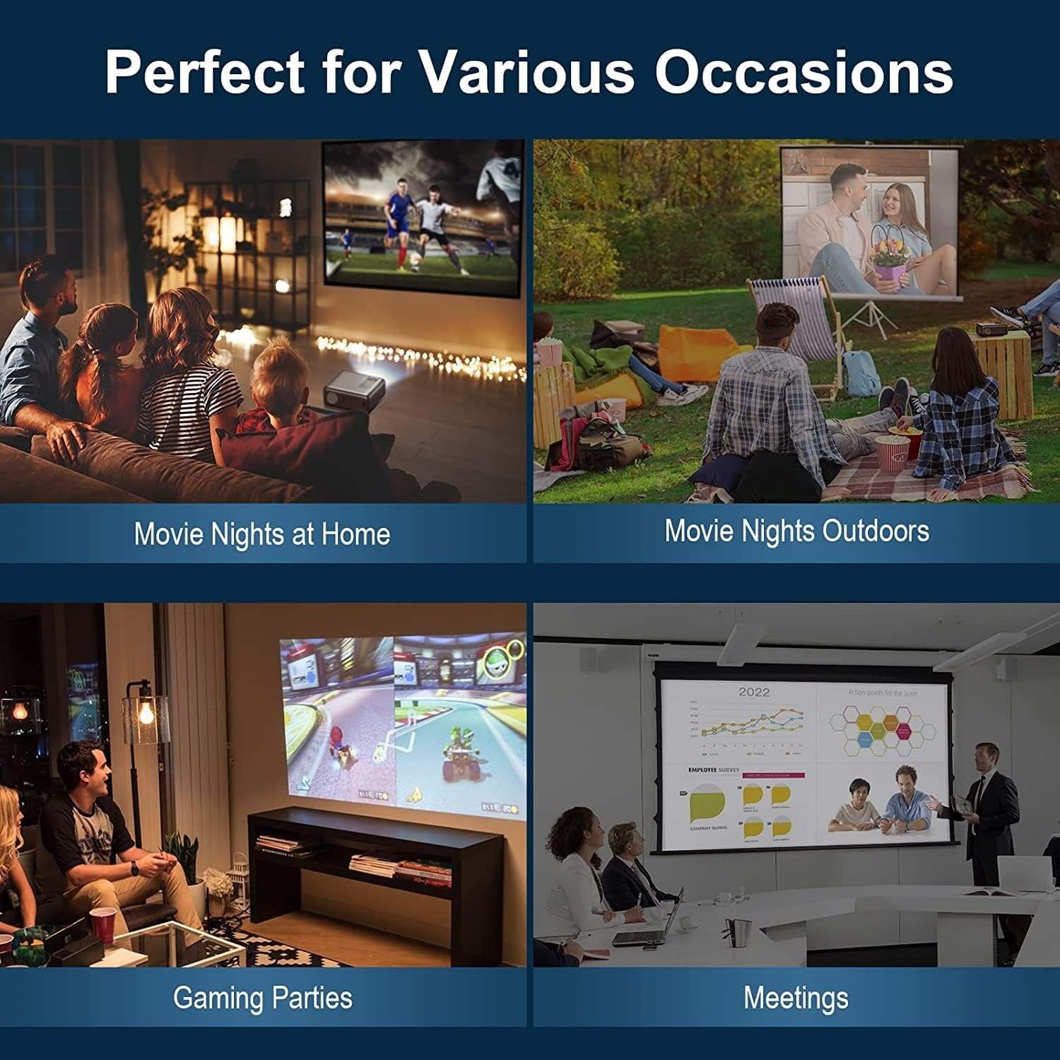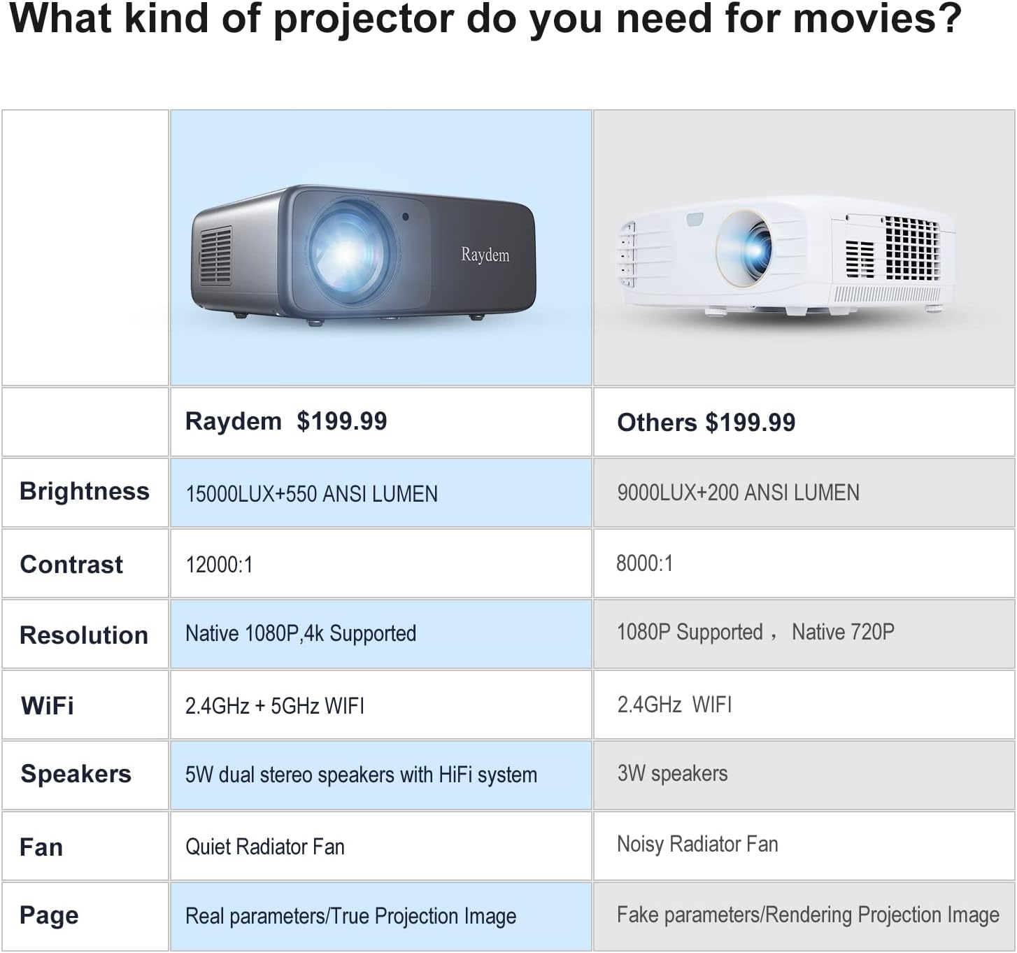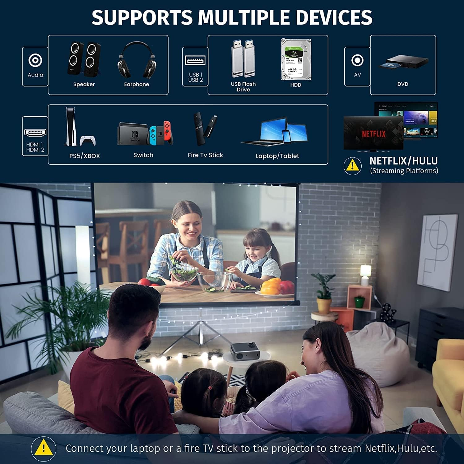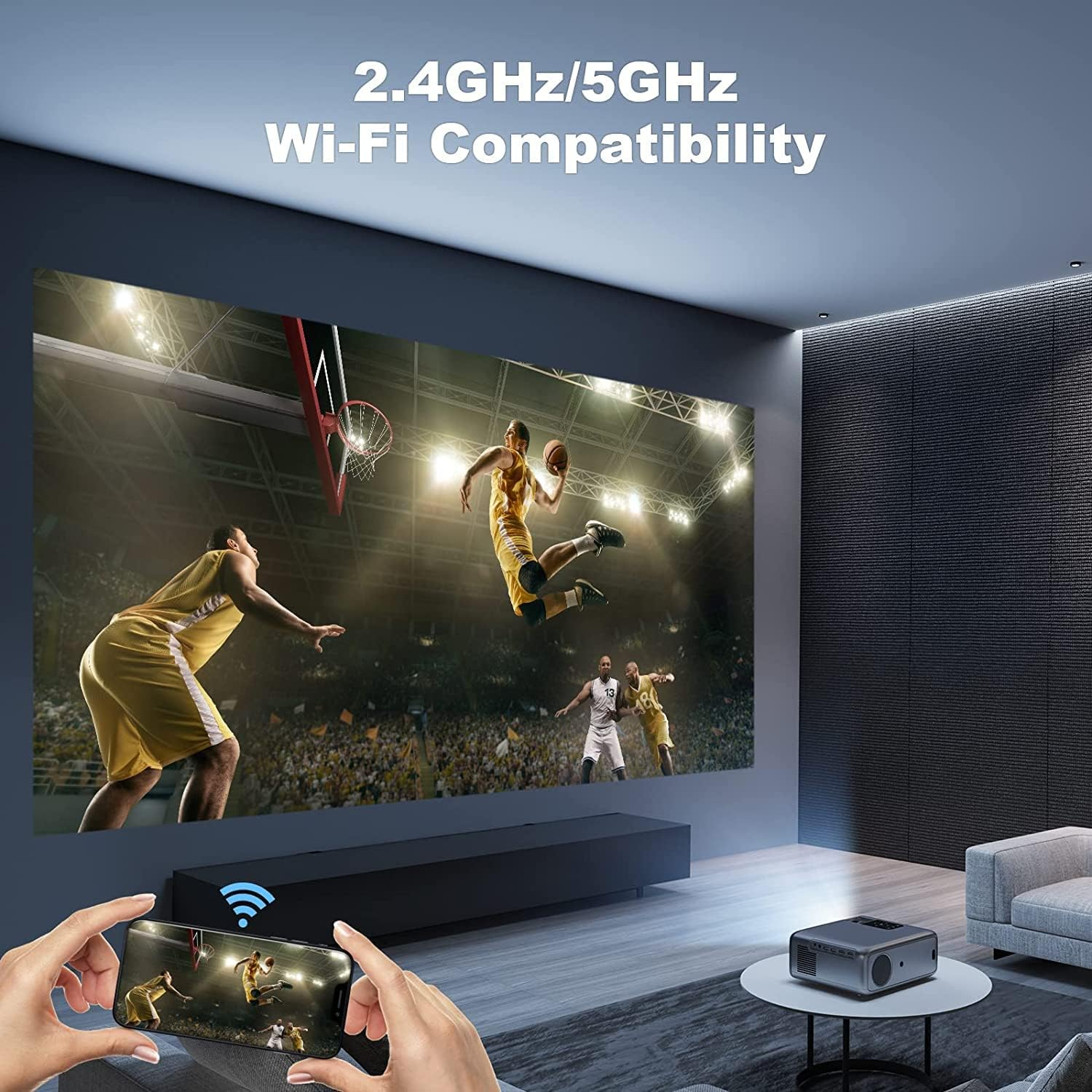 1080P Projector, 4K Outdoor Movie Projectors with WiFi and Bluetooth, Smart Video Projector Compatible with TV Stick, Native 550ANSI 13000L
