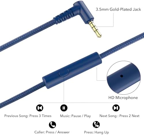 JOMILIN A8 Wired Over-Ear Headphones with Microphone, Lightweight Folding Portable Headset with 1.5M No-Tangle Cord, 3.5mm Plug in Headphones for Smartphone Tablet Computer MP3 / 4 (Blue)