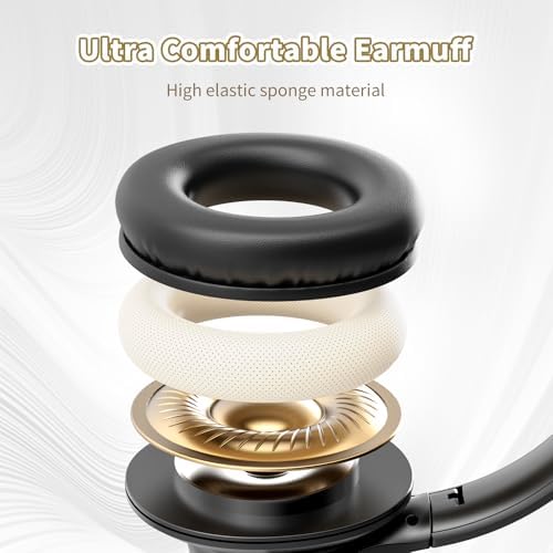 KVIDIO Bluetooth Headphones Over Ear, 65 Hours Playtime Wireless Headphones with Microphone, Foldable Lightweight Headset with Deep Bass, HiFi Stereo Sound Low Latency for Travel Work Cellphone