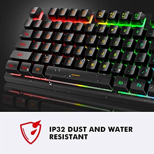 RedThunder K10 Wired Gaming Keyboard and Mouse and Wrist Rest Combo, RGB Backlit, Mechanical Feel Anti-ghosting Keyboard + 7D 7200 DPI Mice+Soft Leather Wrist Rest 3 in 1 PC Gamer Accessories(Black)