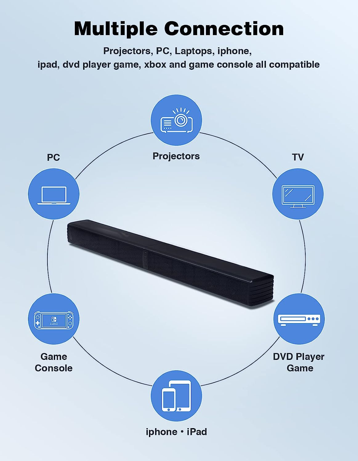 Puxinat 2 in 1 Separable Sound Bars for TV, 2.2 Channel 32Inch Bluetooth 5.0 TV Speaker for Surround Sound System, Built-in Dual Subwoofer, Bass Adjustable, Remote Control Included