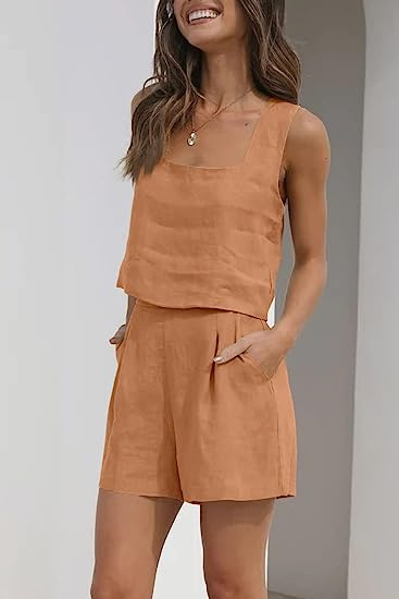 AUTOMET Womens 2 Piece Outfits Lounge Matching Sets Two Piece Linen Shorts Crop Tops 2023 Trendy Clothes Summer Vacation Set