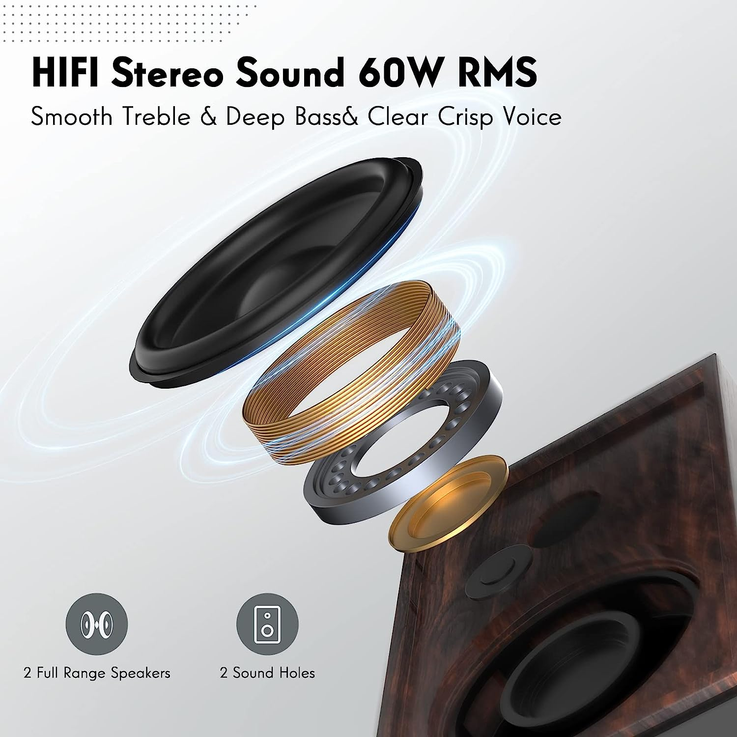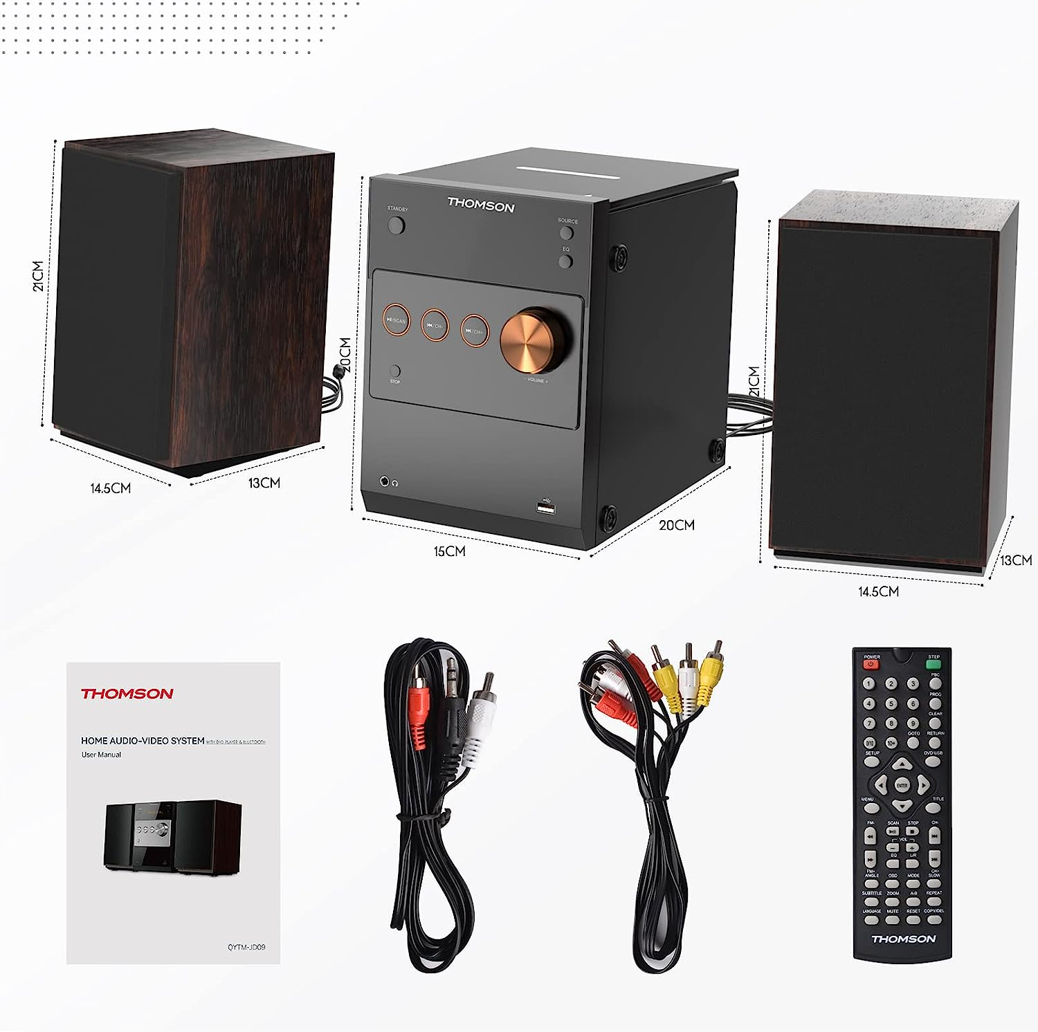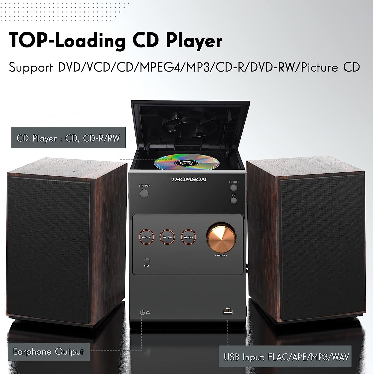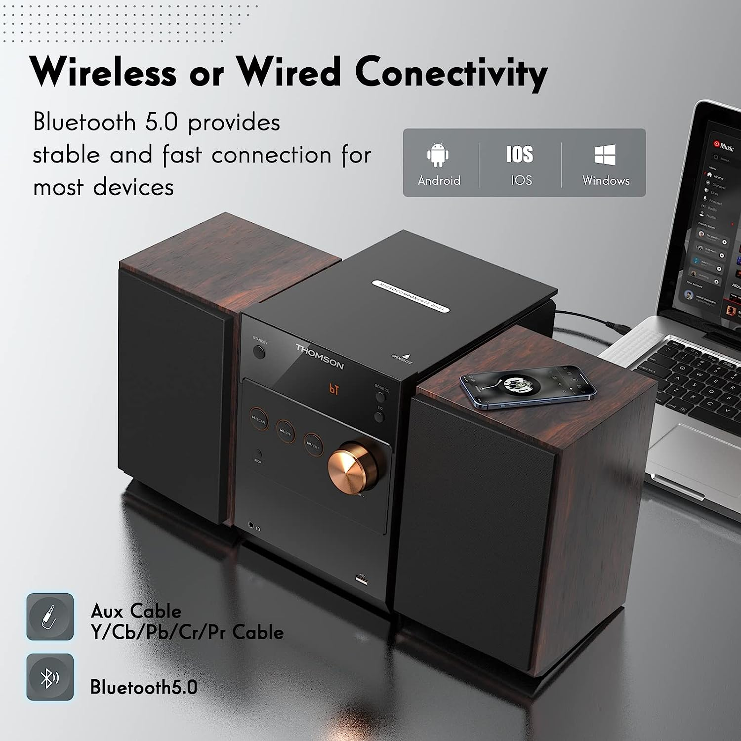 THOMSON Bluetooth Home Stereo System, 60W HiFi Shelf Stereo System with CD Player & Wireless Bluetooth Audio Streaming, FM Radio, USB Playback, Aux-in & Earphone Jack, Remote Control