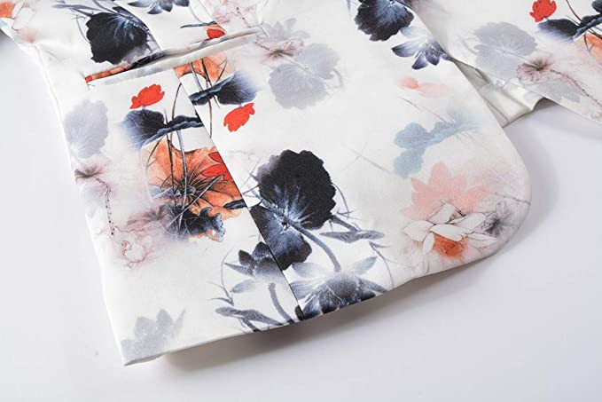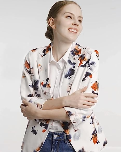 Womens 3/4 Sleeve Lightweight Office Work Suit Jacket Floral Blazer
