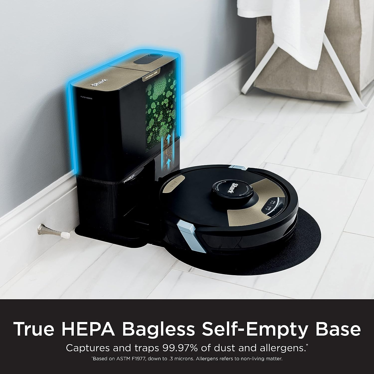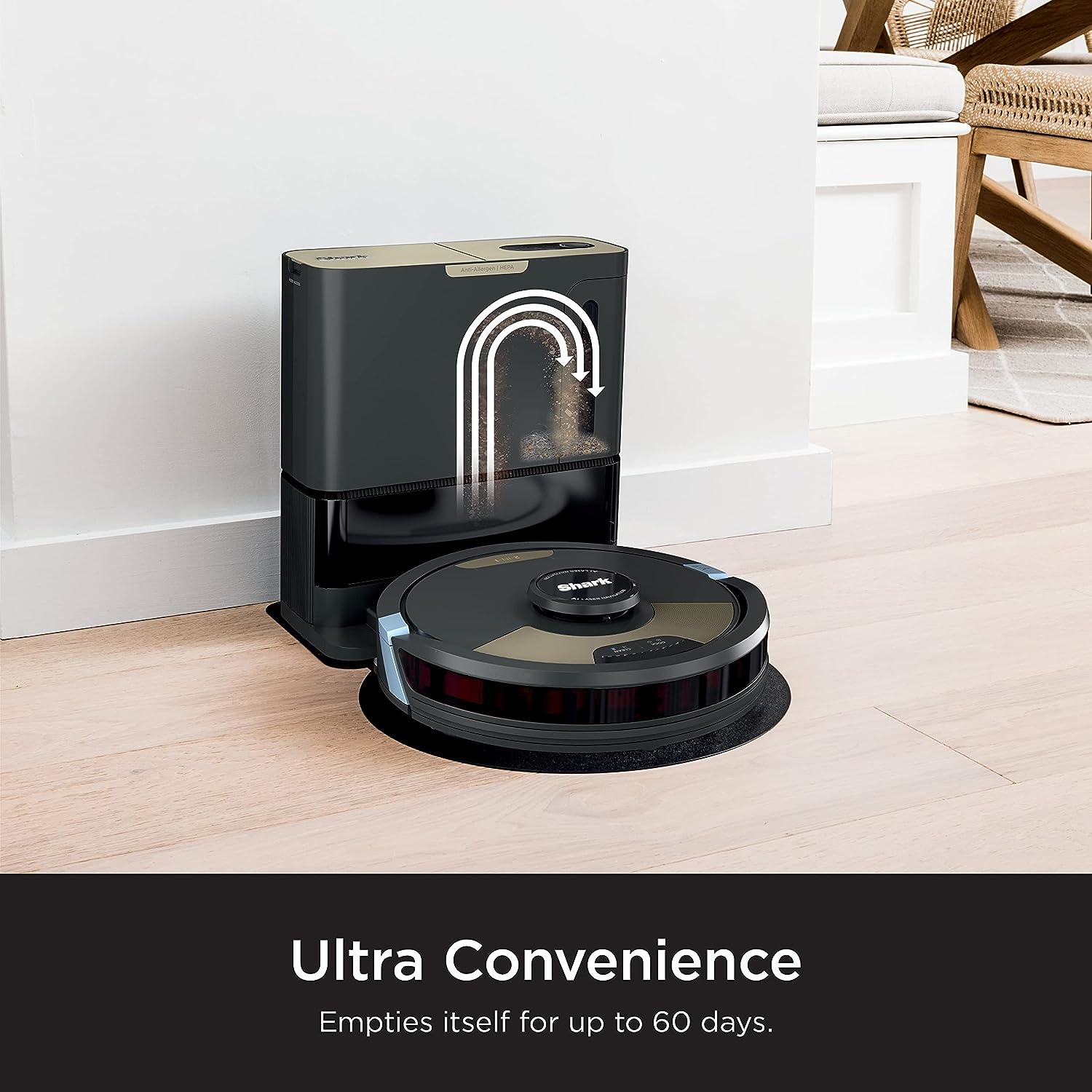 Shark AV2610WA AI Ultra 2in1 Robot Vacuum & Mop with Sonic Mopping, Matrix Clean, Home Mapping, HEPA Bagless Self Empty Base, CleanEdge Technology, for Pet Hair, Wifi, Works with Alexa, Black/Gold