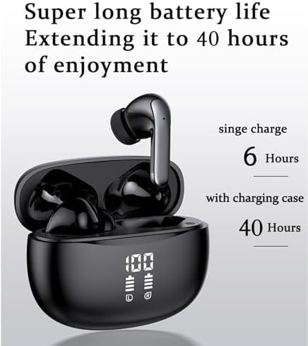 Wireless Bluetooth Headphones, 40H Playback Bluetooth Earbuds with LED Power Display Charging Case, IPX5 Waterproof Wireless Headphones with Mic for Phone Gaming TV Sports